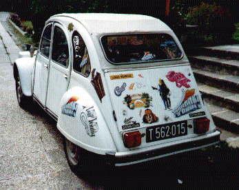 Noch Jungfräulich mit lediglich einigen Aufklebern. Sie brachte gerademal 100.000km auf den Tacho besuchte viele 2CV-Treffen ,unter anderem 2 in Istanbul, bevor sie 1987 nach einem kleinen Unfall für viele Jahre in der Garage verschwand.
